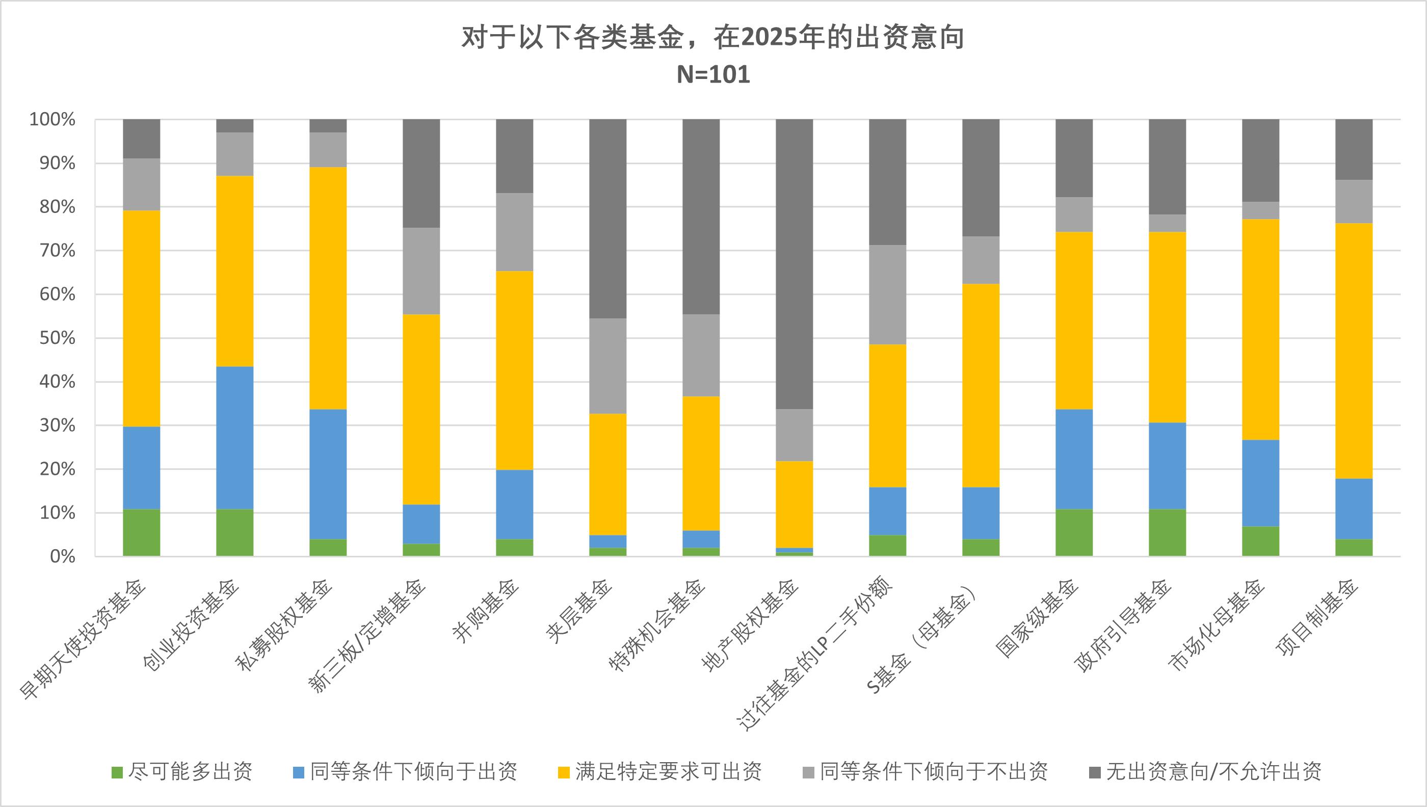 本次調(diào)研問卷題目共101題,涵蓋了政府引導(dǎo)基金、央企/國企、險資、家族辦公室等101家機構(gòu)LP。以下為調(diào)研結(jié)果發(fā)現(xiàn):