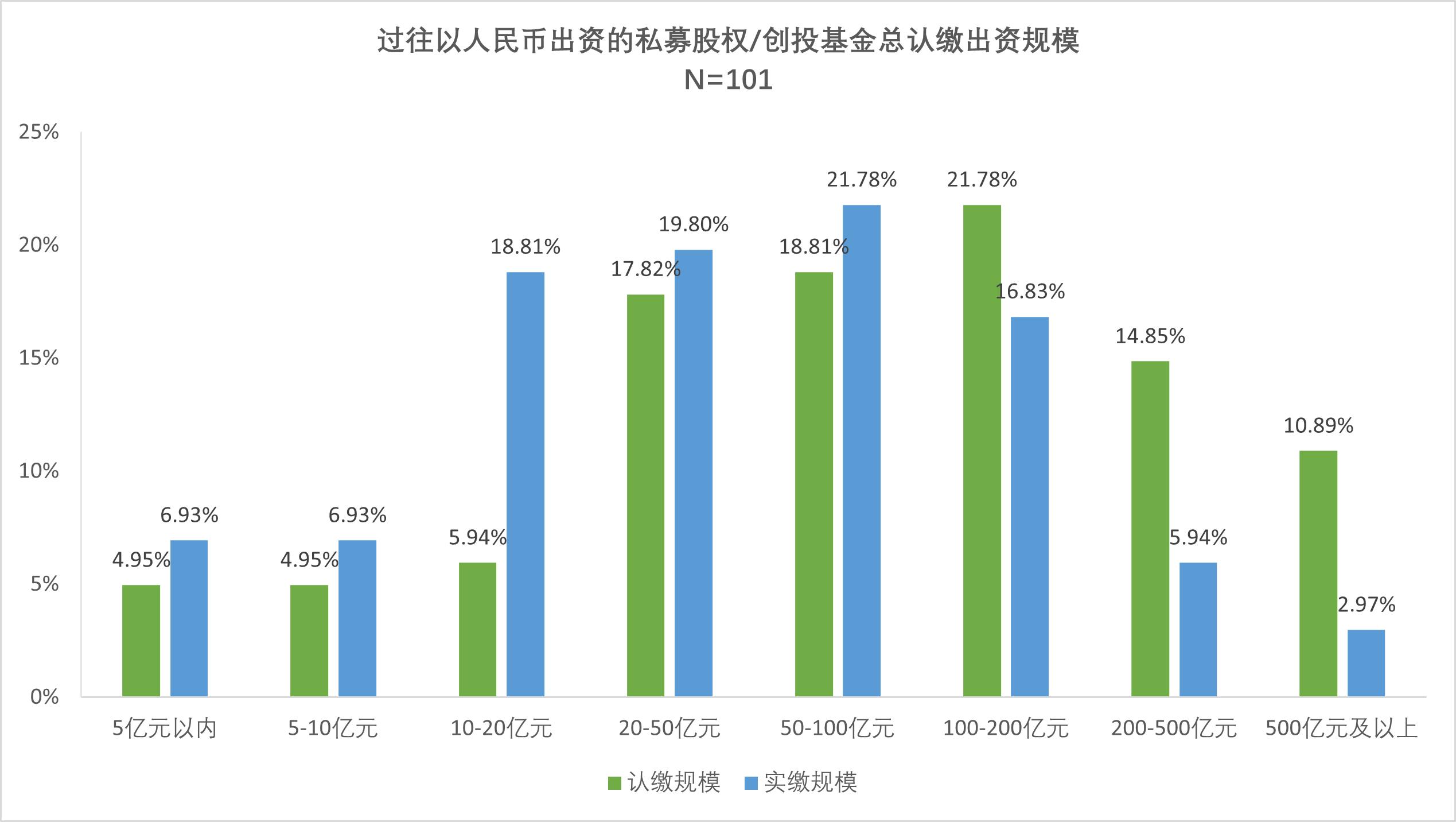 調(diào)研結(jié)果顯示,近半數(shù)(47.5%)機構(gòu)認繳規(guī)模超100億元,其中11家機構(gòu)認繳規(guī)模達500億元以上,但實繳規(guī)模超100億元的機構(gòu)占比不足三成(25.7%),反映出部分大額承諾資金尚未完全到位,存在顯著的“認繳-實繳”資金到位缺口,機構(gòu)募資環(huán)境承壓,行業(yè)出清加速。