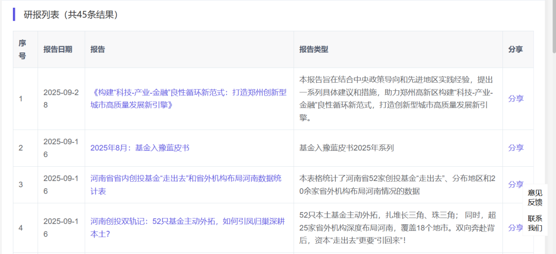 提供專(zhuān)題研究報(bào)告,包括基金入豫藍(lán)皮書(shū)、產(chǎn)業(yè)政策研究報(bào)告、創(chuàng)投基金投資報(bào)告及科創(chuàng)金融研究報(bào)告,為決策提供深度洞察與數(shù)據(jù)支持。