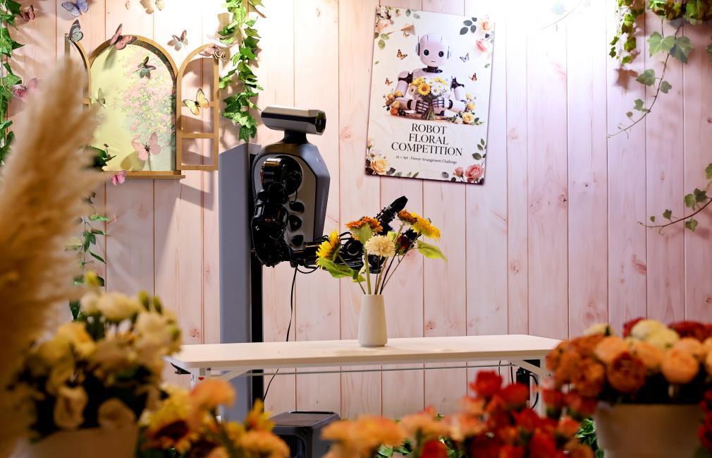 在應急救援賽區(qū)的對面,具身智能被包圍在鮮花叢中,有11支賽隊一較高下。第三屆全國職業(yè)技能大賽人工智能賽道上海隊教練張曄說,這考驗的是對“力”的掌控,因為花莖的脆度、花瓣的張力,都在毫厘之間。
