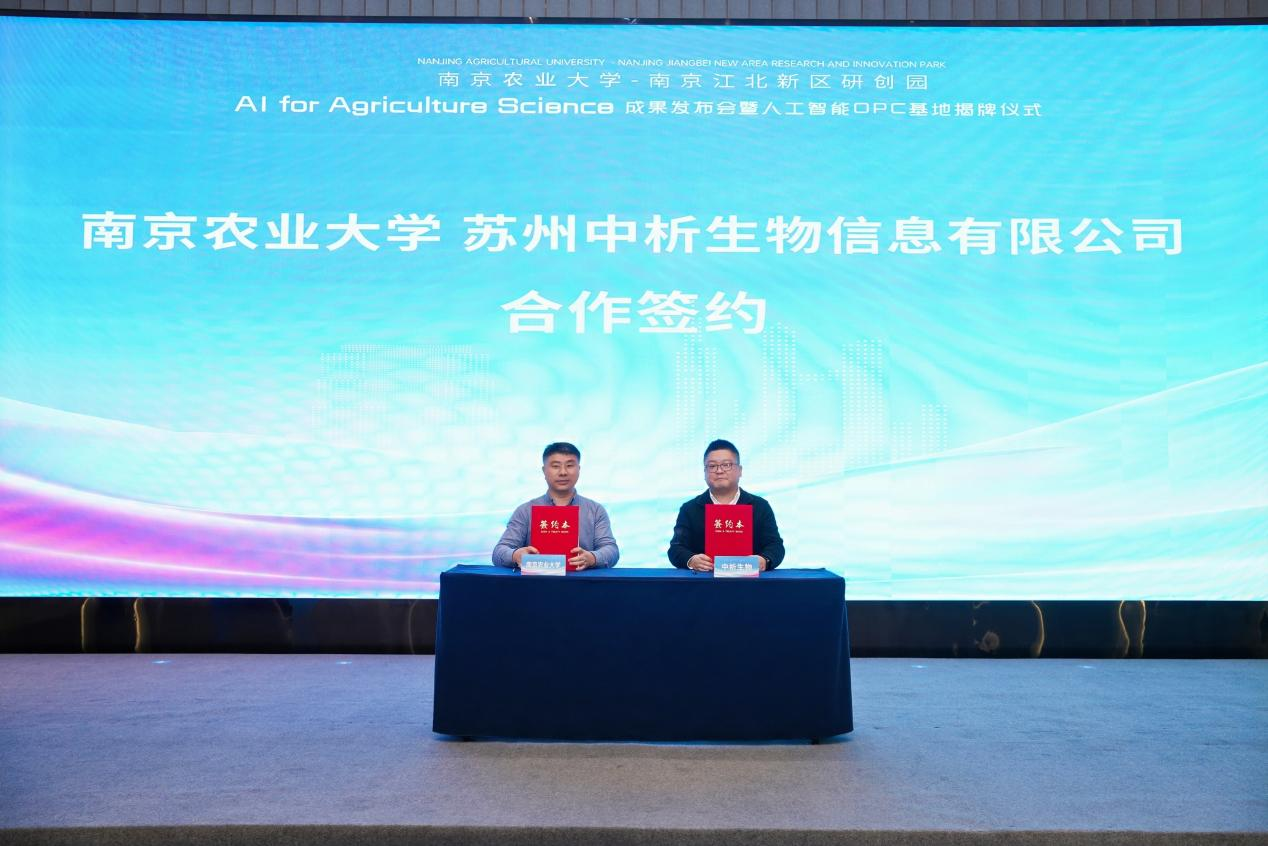 發(fā)布會現(xiàn)場,“南京農(nóng)業(yè)大學(xué)-南京江北新區(qū)研創(chuàng)園人工智能OPC基地”正式揭牌。