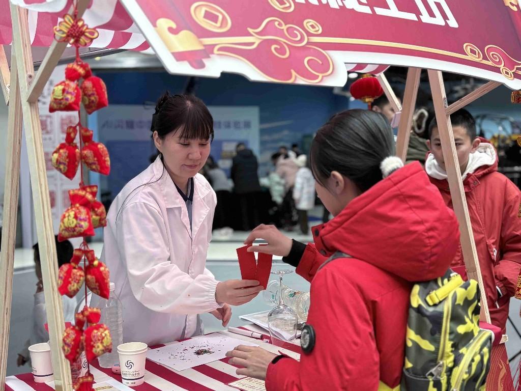 據(jù)了解,十大特色主題坊市各具巧思,構(gòu)成了游園的骨架與靈魂。觀眾手持專屬的“科學(xué)游園會(huì)”手冊(cè),便可開(kāi)啟闖關(guān)集“幣”之旅。在“毽舞飛揚(yáng)”區(qū),每一次踢毽都關(guān)乎力學(xué)平衡的實(shí)踐;“壺中玄機(jī)”則讓拋物線定律從課本躍入投壺的游戲之中?!扒伤贾i城”考驗(yàn)邏輯推理,“機(jī)巧乾坤”讓人沉醉于魯班鎖、九連環(huán)的拆解樂(lè)趣。而“拓印福字”等非遺體驗(yàn),讓親手制作的年味成為可攜帶的記憶。完成挑戰(zhàn)贏取的“科學(xué)幣”,可兌換成特色文創(chuàng)或5D影院觀影券。