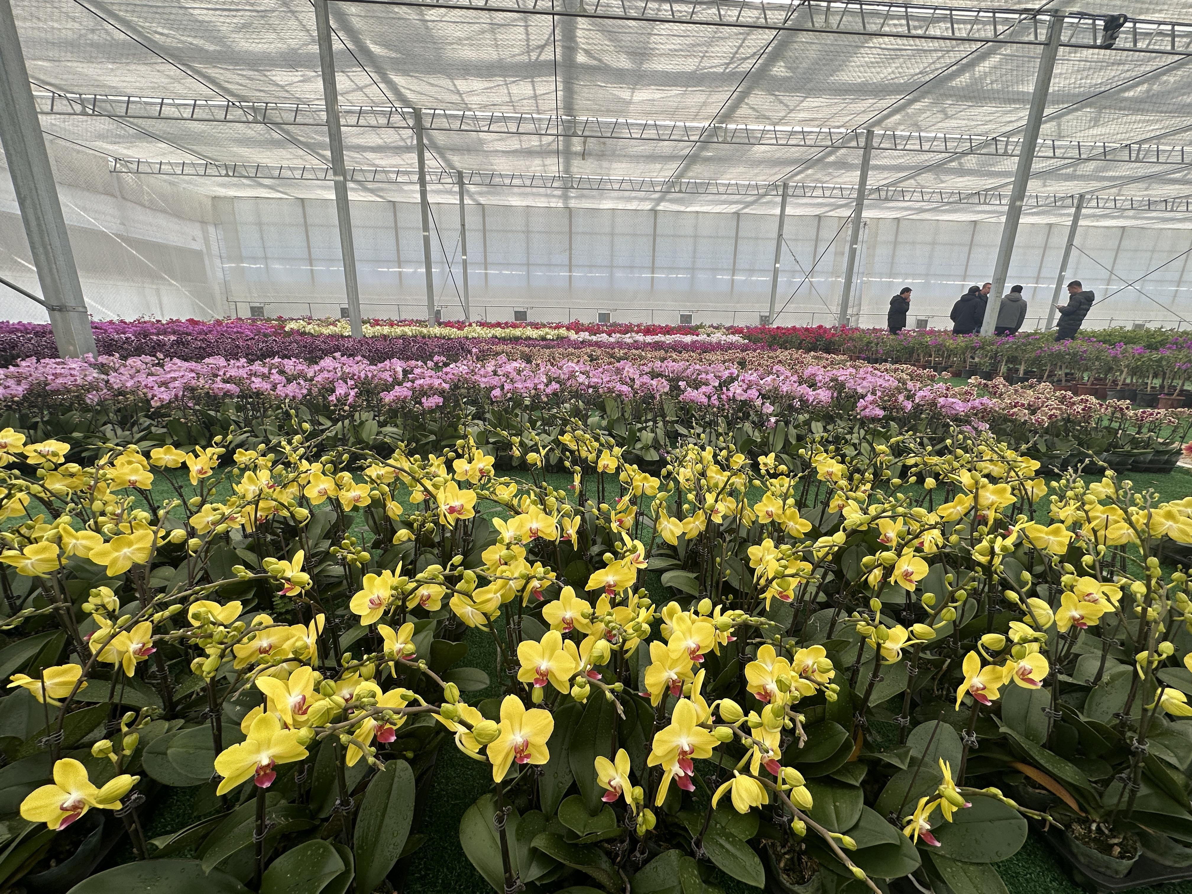 作為近期重點(diǎn)落地項(xiàng)目,唐山蘆臺(tái)晨豐現(xiàn)代花卉示范基地填補(bǔ)了當(dāng)?shù)亓止ɑ墚a(chǎn)業(yè)空白。溫室內(nèi),5萬株小花蝴蝶蘭、木本石灰燈繡球、盆栽桂花等整齊排列,生機(jī)勃勃。