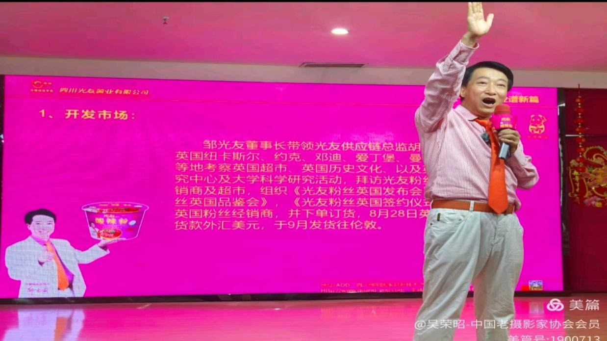 鄒光友在會(huì)上演講《粉絲讓人生更精彩》,粉絲如何讓人生更精彩?怎樣打造自己的金飯碗?從以下幾方面做起:成功心態(tài)萬事成、辭官下海賣紅薯、管理模式共分享、人生精彩粉絲路,震驚全場(chǎng)。