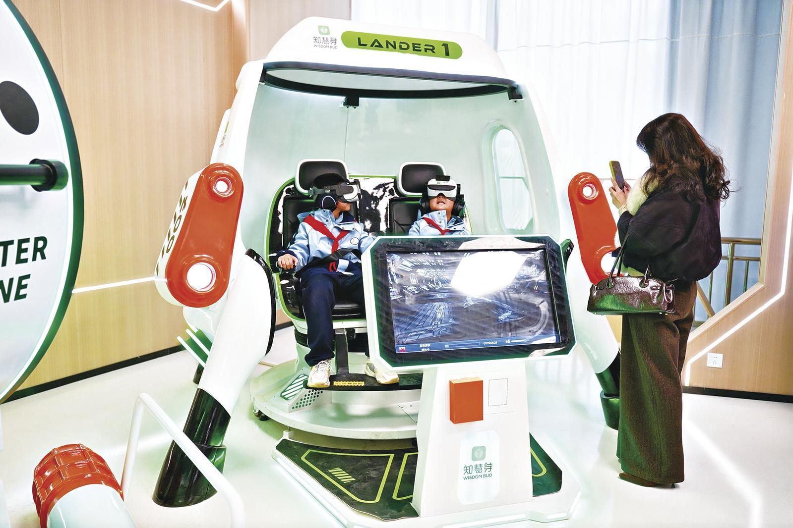 除了仙俠秘境外,這里還有多種場(chǎng)景選擇。有的在綠水青山間自由翱翔,有的在太空探索宇宙奧秘……沉浸式體驗(yàn)結(jié)束后,參觀者還可以即時(shí)掃碼生成專屬影片,并快捷便利地下載保存至手機(jī)上。