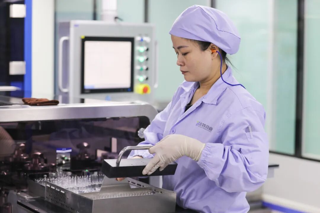 11月6日上午,在海南倍特藥業(yè)有限公司注射劑生產(chǎn)車間里,車間數(shù)字看板清楚地顯示著生產(chǎn)批次、狀態(tài)等信息,工人們?cè)缭鐏?lái)到工作崗位,投入緊張的生產(chǎn)任務(wù)之中。經(jīng)過配液、洗瓶、灌裝、燈檢驗(yàn)漏、貼標(biāo)、包裝……一支支地塞米松磷酸鈉注射液完成打包裝箱,蓄勢(shì)待發(fā)。單就這一條生產(chǎn)線,一天就有約30萬(wàn)支地塞米松磷酸鈉注射液順利下線。
