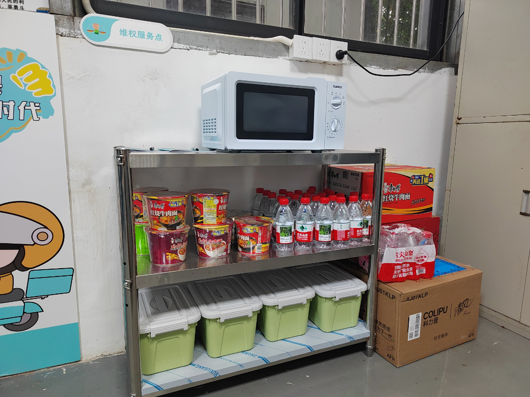 “11月上旬,樂山高新區(qū)市場(chǎng)監(jiān)管部門的負(fù)責(zé)人上門來,跟我協(xié)商想在我們這兒打造一個(gè)快遞員驛站,解決快遞員吃飯難的問題。我們當(dāng)時(shí)聽到了都很高興,因?yàn)榭爝f員工作的特殊性,門店也確實(shí)沒辦法給他們?cè)O(shè)置食堂。這個(gè)事情說了后第三天,樂山高新區(qū)市場(chǎng)監(jiān)管局的工作人員就把微波爐和泡面、飲用水送過來了。真的是太快了。”四川順豐速運(yùn)有限公司樂山分公司祥新路營(yíng)業(yè)點(diǎn)負(fù)責(zé)人曾杰感慨道。