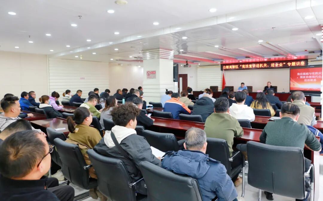 為扎實(shí)推進(jìn)“憲法宣傳周”活動走深走實(shí),12月4日,白銀高新區(qū)舉辦“憲法宣講進(jìn)機(jī)關(guān)、進(jìn)企業(yè)”專題講座,以法治賦能園區(qū)治理提質(zhì)、企業(yè)發(fā)展增效,讓憲法精神在機(jī)關(guān)履職和企業(yè)經(jīng)營中落地生根。白銀高新區(qū)黨工委委員、管委會副主任張尚昆主持會議。