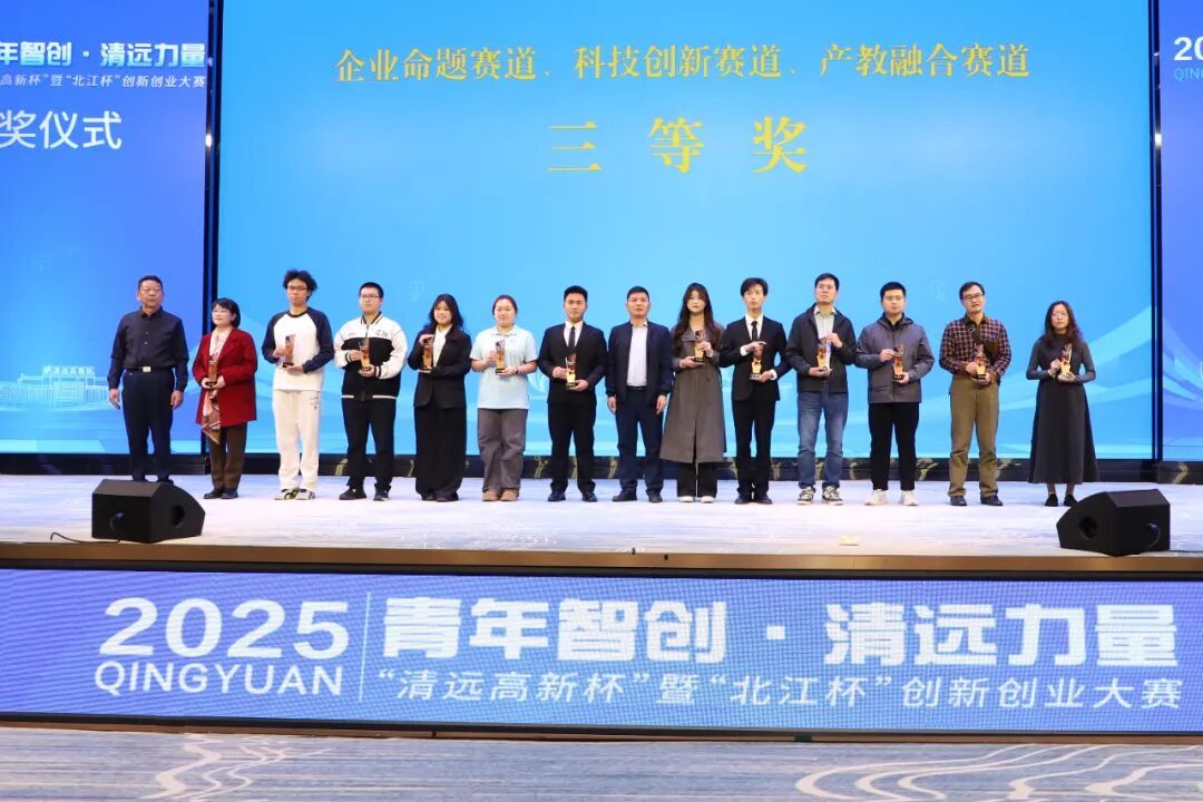 在下午的頒獎(jiǎng)儀式上,清遠(yuǎn)市人力資源和社會(huì)保障局黨組成員、副局長劉美志,清遠(yuǎn)高新區(qū)黨工委委員、黨政辦主任李振興,廣東省職教城(清遠(yuǎn))事務(wù)中心副主任溫秀媚,清遠(yuǎn)市科學(xué)技術(shù)局四級(jí)調(diào)研員陳國新等出席,與來自各賽道的31個(gè)獲獎(jiǎng)項(xiàng)目團(tuán)隊(duì)成員及各界嘉賓共同見證這一榮耀時(shí)刻。