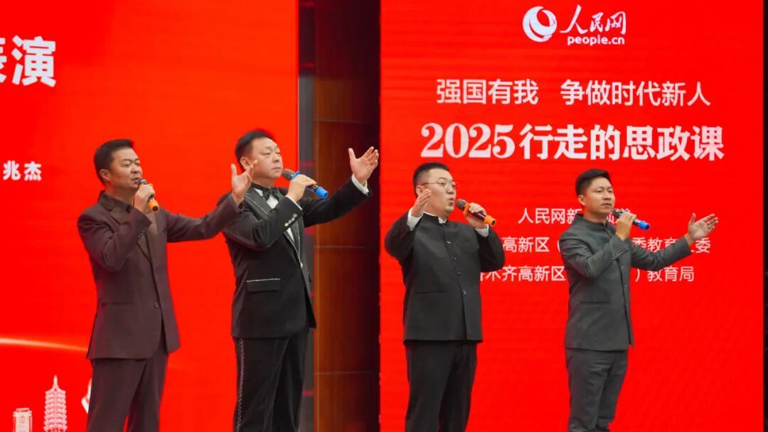從天山腳下出發(fā),前往北京、福建寧德下黨鄉(xiāng)、陜西延安與西安,在居庸關(guān)長城感悟歷史脈動,在天安門廣場見證國旗升起,在清華北大浸潤學(xué)術(shù)氛圍,在陜西延安追尋紅色足跡……利用烏魯木齊首個(gè)雪假,烏魯木齊高新區(qū)(新市區(qū))教育工委、教育局聯(lián)合人民網(wǎng)新疆頻道舉辦“強(qiáng)國有我 爭做時(shí)代新人——2025行走的思政課”活動,將思政小課堂融入社會大課堂,在歷史現(xiàn)場與實(shí)踐場景中觸摸真理,在互動體驗(yàn)與情感共鳴中筑牢信仰。整場主題分享會通過四大篇章進(jìn)行串聯(lián),在烏魯木齊市第三十六小學(xué)教育集團(tuán)“大榆樹”交響管樂團(tuán)演奏的《鋼鐵洪流進(jìn)行曲》中拉開帷幕。