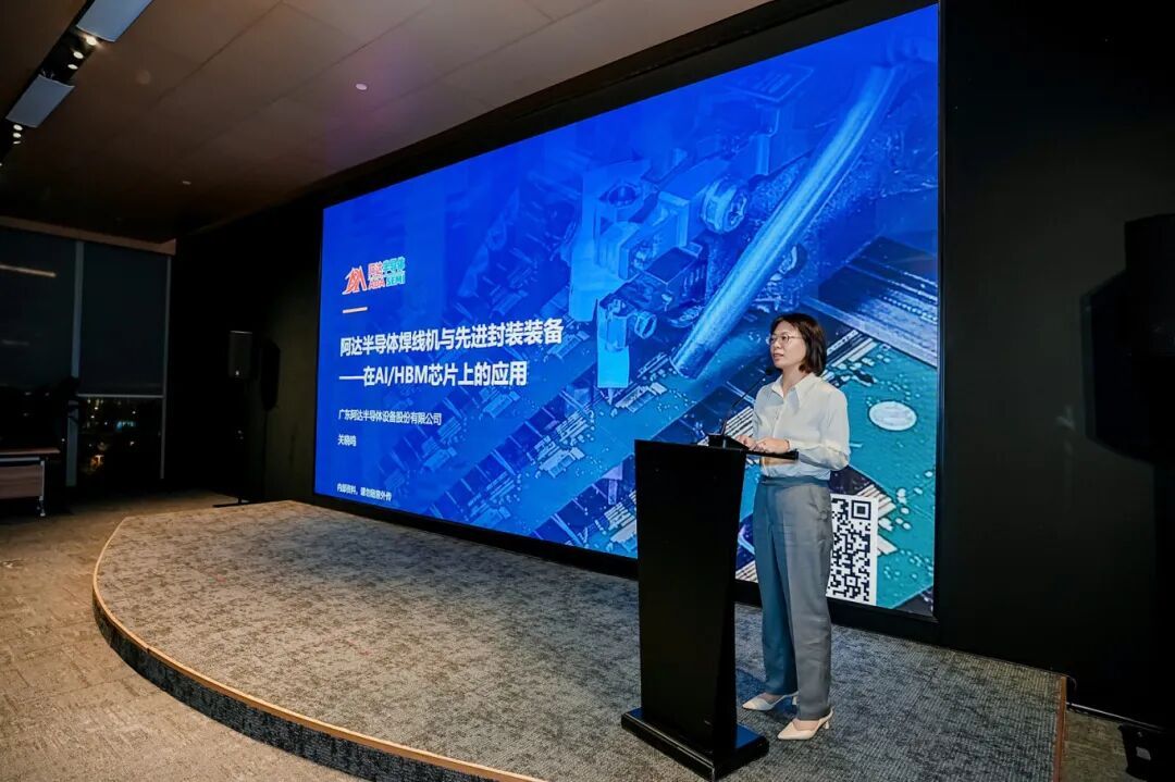 廣東阿達半導體設備股份有限公司董事長秘書關曉鳴展示了“阿達半導體焊線機與先進封裝裝備在AI/HBM芯片上的應用”,面對AI芯片和HBM(高帶寬內(nèi)存)對焊線精度與效率的極致要求,阿達半導體攻克了關鍵技術與工藝,其設備性能比肩國際先進水平,為芯片的封裝測試環(huán)節(jié)提供了可靠的國產(chǎn)裝備選擇,是提升產(chǎn)業(yè)鏈自主可控能力的重要一環(huán)。