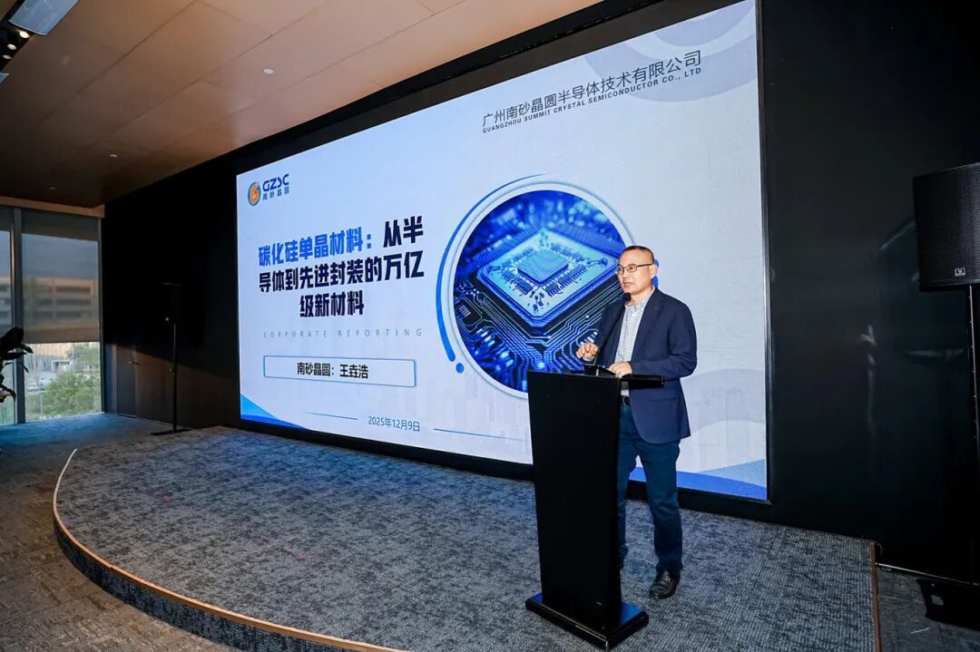 碳化硅破界,定義萬億新材料藍海:南沙區(qū)高企形象大使、廣州南砂晶圓半導體技術有限公司董事長王垚浩,以前瞻性視角勾勒了《碳化硅單晶材料:從半導體到先進封裝的萬億級新材料》的宏大圖景。他指出,碳化硅憑借其優(yōu)異的導熱、高折射率等特性,應用邊界正從傳統(tǒng)的功率半導體,迅猛擴展至AR眼鏡光學襯底、GPU先進封裝熱沉(替代氮化鋁)、CoWoS封裝中間層等全新領域。他預測,到2035年,僅AR眼鏡和先進封裝兩大新興市場,就可能為碳化硅材料帶來超過5000億元人民幣的市場規(guī)模,一個萬億元級的產(chǎn)業(yè)集群正在中國加速成型。
