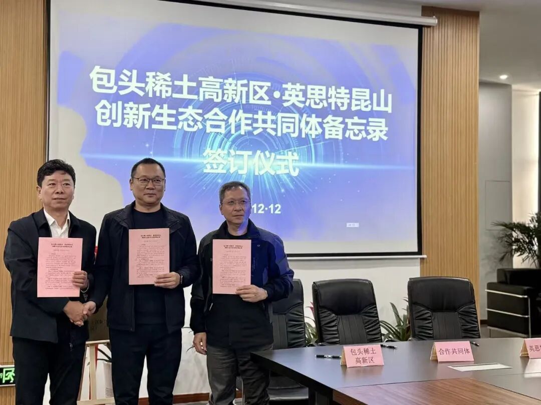 12日,合作接力棒傳遞至昆山?;顒釉O置“稀磁聚勢”“對話未來”“昆蒙鏈動”“攜手共贏”4個篇章?,F(xiàn)場,包頭稀土高新區(qū)與包頭市英思特稀磁新材料股份有限公司昆山分公司達成合作。雙方共同與昆山嘉寶榮電子科技有限公司、昆山寶立榮電子科技有限公司簽訂《包頭稀土高新區(qū)?英思特昆山創(chuàng)新生態(tài)合作共同體備忘錄》,依托英思特公司“包頭成長、昆山深耕”的優(yōu)勢,將構建“需求直通車”與“研發(fā)共同體”,以長三角市場的敏銳需求為導向,驅動包頭稀土新材料迭代創(chuàng)新,推動產業(yè)鏈上下游共用“稀土科技創(chuàng)新鏈”,實現(xiàn)產業(yè)深度融合。