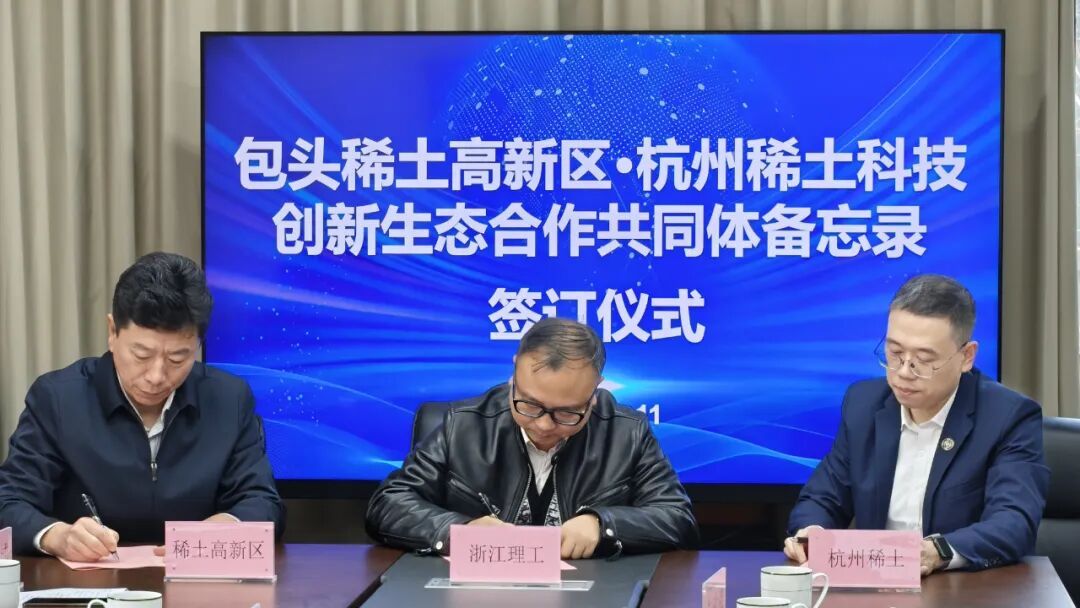 11日,首場活動在杭州啟幕。活動現(xiàn)場,包頭稀土高新區(qū)與杭州包鋼稀土科技發(fā)展有限責任公司達成戰(zhàn)略合作。雙方共同與杭州市余杭區(qū)科學技術局明確“稀土+人工智能”和“稀土+新材料”科技創(chuàng)新合作方向,與中國稀土行業(yè)協(xié)會稀土金屬及合金分會、浙江清華長三角研究院杭州分院、浙江理工大學稀土研究中心、浙江旭燁資產管理有限公司和杭州新集智機電有限公司簽訂《包頭稀土高新區(qū)?杭州稀土科技創(chuàng)新生態(tài)合作共同體備忘錄》。備忘錄創(chuàng)新提出“1+3+N”雙向賦能模式——以合作中心為核心樞紐,搭建“稀土+創(chuàng)新創(chuàng)業(yè)大賽”“稀土+‘雙招雙引’聯(lián)絡驛站”“稀土+合作共同體”三大支撐平臺,將持續(xù)匯聚N個人才、成果與項目資源。