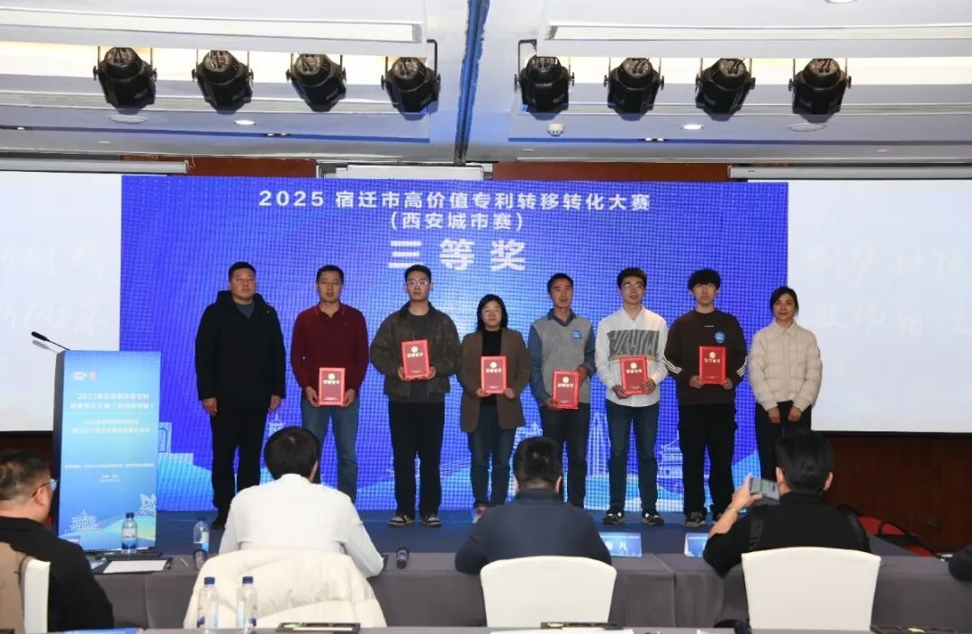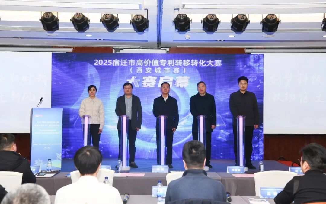 為深入貫徹專利轉(zhuǎn)化運(yùn)用專項(xiàng)行動要求,落實(shí)人才引領(lǐng)服務(wù)發(fā)展“五聯(lián)五強(qiáng)”行動,推動高價值專利成果在宿遷轉(zhuǎn)移轉(zhuǎn)化、吸引高層次人才來宿創(chuàng)新創(chuàng)業(yè),12月19日,由宿遷市市場監(jiān)管局(知識產(chǎn)權(quán)局)、宿遷高新區(qū)管委會聯(lián)合主辦的2025宿遷市高價值專利轉(zhuǎn)移轉(zhuǎn)化大賽(西安城市賽)在西安成功舉辦。宿遷市市場監(jiān)管局黨組成員、副局長胡剛,宿遷高新區(qū)黨工委委員、管委會副主任孫家勝出席大賽啟幕儀式,并為獲獎項(xiàng)目頒獎。