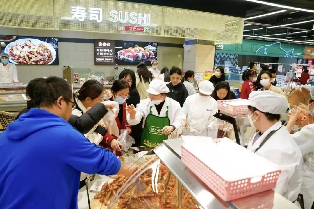 新增現(xiàn)切三文魚(yú)、現(xiàn)場(chǎng)果切等鮮食服務(wù),滿(mǎn)足消費(fèi)者對(duì)即食健康食品的需求。全新增設(shè)鮮花專(zhuān)區(qū),以“生鮮+鮮花”的多元業(yè)態(tài)組合,為市民帶來(lái)更具品質(zhì)感與幸福感的沉浸式購(gòu)物新體驗(yàn)。烘焙區(qū)則配備專(zhuān)業(yè)團(tuán)隊(duì),現(xiàn)場(chǎng)制作豐富多樣的烘焙美食,滿(mǎn)足了消費(fèi)者對(duì)品質(zhì)生活的追求。針對(duì)年輕群體對(duì)新鮮、即時(shí)美食的需求,對(duì)熟食專(zhuān)區(qū)進(jìn)行了重點(diǎn)升級(jí),引入了一系列熱門(mén)明檔現(xiàn)制美食,實(shí)現(xiàn)從原料到成品的全流程品質(zhì)把控。此外,冷鏈運(yùn)輸?shù)孽r活海鮮也直接送達(dá),讓市民在家門(mén)口就能品嘗到新鮮的海味。