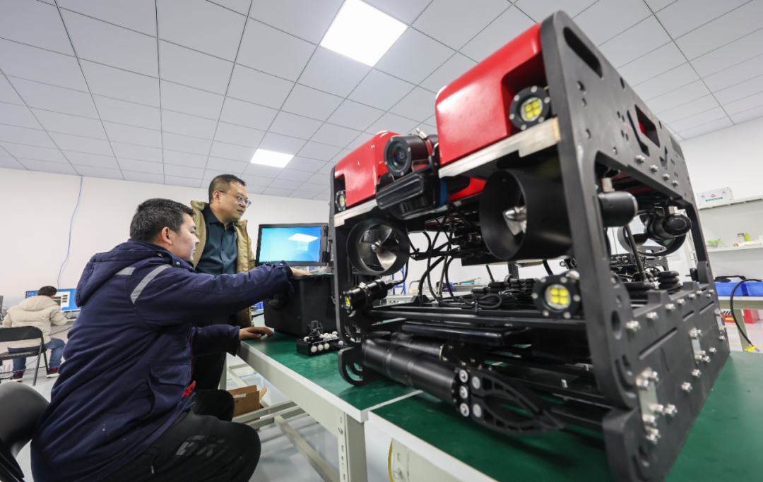 走進公司展廳,一臺臺造型精巧的水下機器人整齊陳列?!拔覀兊纳钏當z像機能扛住12000米深海的極端水壓,相當于一輛汽車的重量壓在指甲蓋上仍安然無恙。既能下探馬里亞納海溝,也能適配全球任何海域作業(yè)需求。”張學軍說,這些產(chǎn)品的核心競爭力,更藏在“高性價比”里。