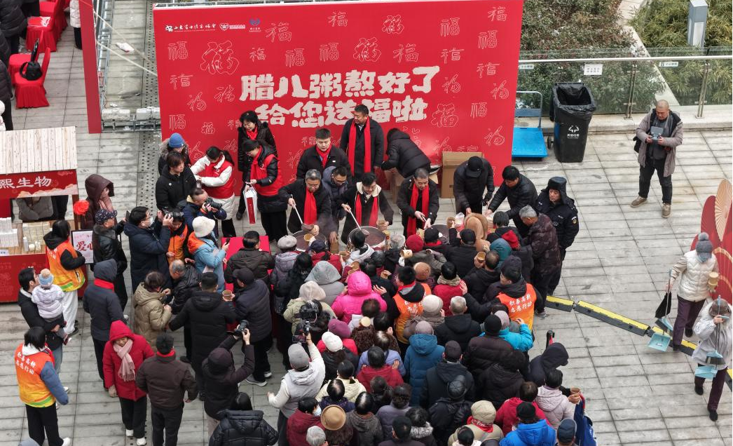 當(dāng)天,“粥香暖人心”贈(zèng)粥活動(dòng)同步舉行。熱氣騰騰、精心熬制的臘八粥被免費(fèi)送到市民手中。