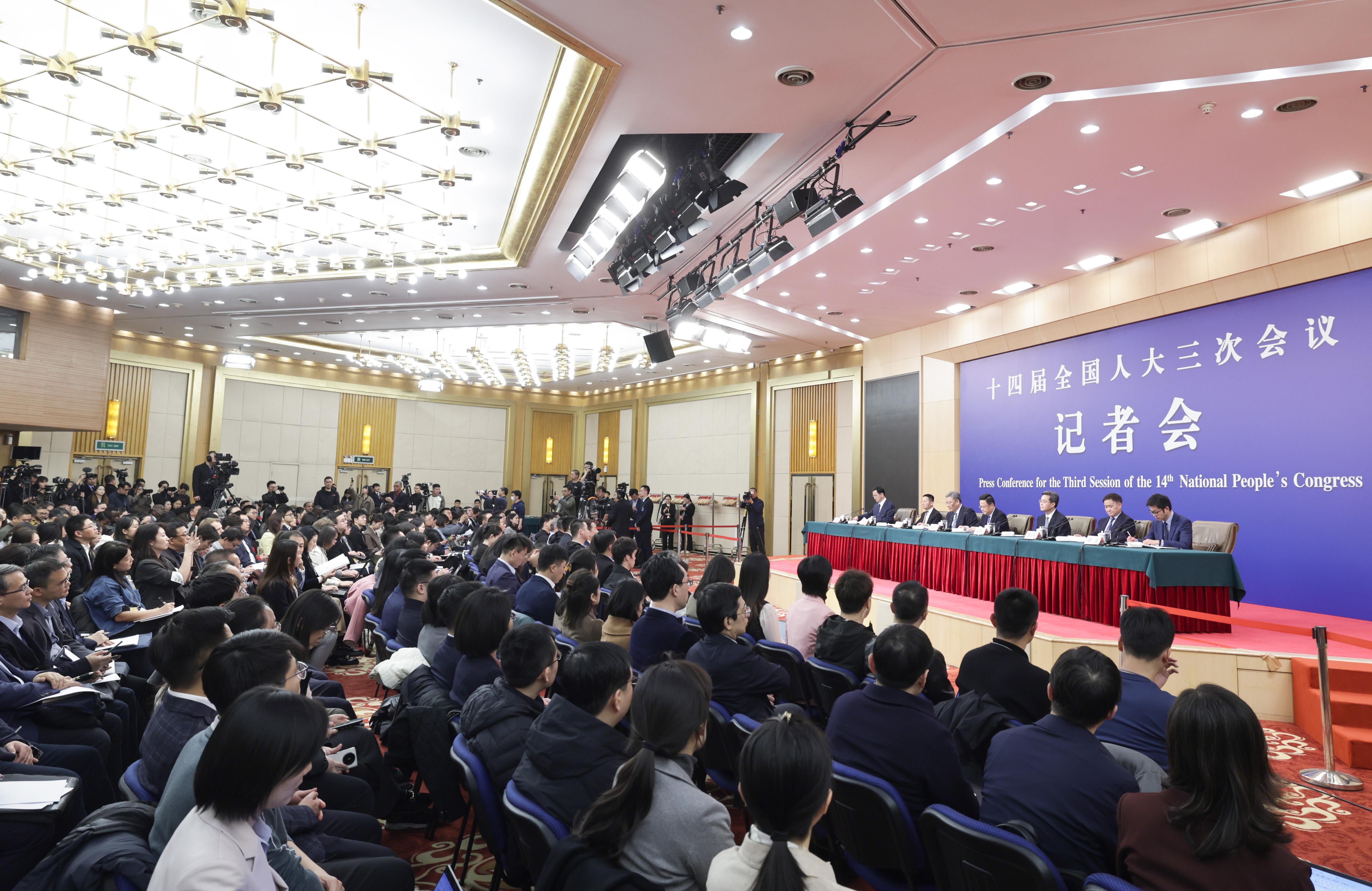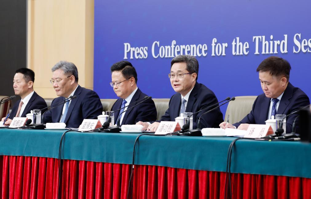 3月6日,十四屆全國(guó)人大三次會(huì)議在北京梅地亞中心新聞發(fā)布廳舉行記者會(huì)。國(guó)家發(fā)展和改革委員會(huì)主任鄭柵潔、財(cái)政部部長(zhǎng)藍(lán)佛安、商務(wù)部部長(zhǎng)王文濤、中國(guó)人民銀行行長(zhǎng)潘功勝、中國(guó)證券監(jiān)督管理委員會(huì)主席吳清就發(fā)展改革、財(cái)政預(yù)算、商務(wù)、金融證券等相關(guān)問題回答中外記者提問。