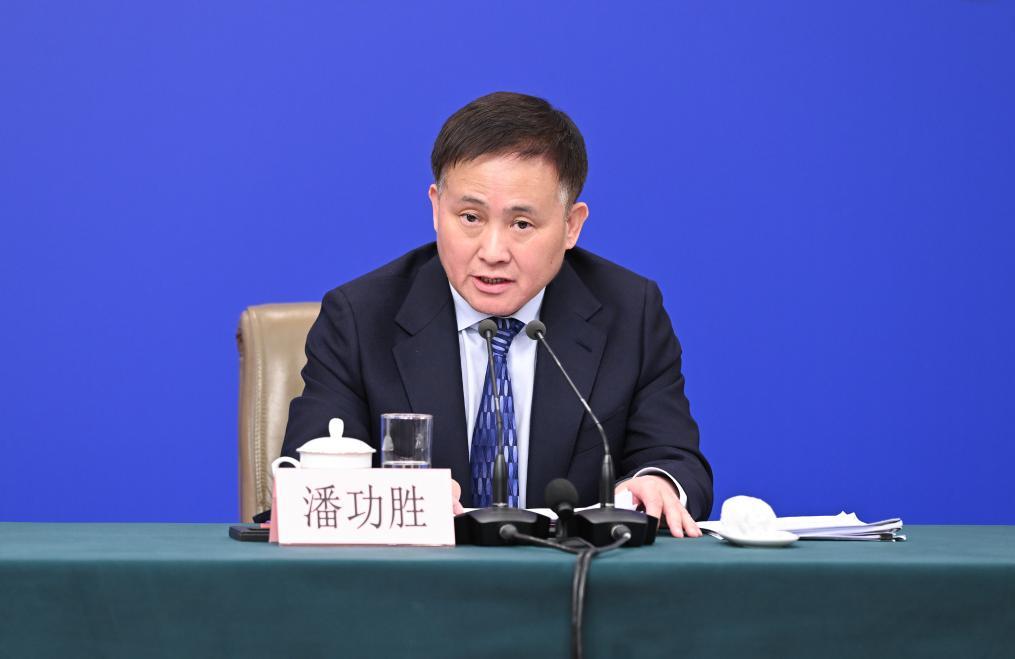 3月6日,十四屆全國(guó)人大三次會(huì)議在北京梅地亞中心新聞發(fā)布廳舉行記者會(huì)。國(guó)家發(fā)展和改革委員會(huì)主任鄭柵潔、財(cái)政部部長(zhǎng)藍(lán)佛安、商務(wù)部部長(zhǎng)王文濤、中國(guó)人民銀行行長(zhǎng)潘功勝、中國(guó)證券監(jiān)督管理委員會(huì)主席吳清就發(fā)展改革、財(cái)政預(yù)算、商務(wù)、金融證券等相關(guān)問題回答中外記者提問。這是潘功勝在回答記者提問。