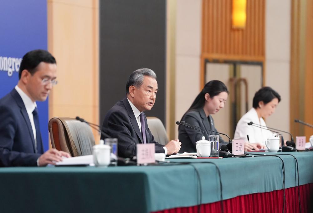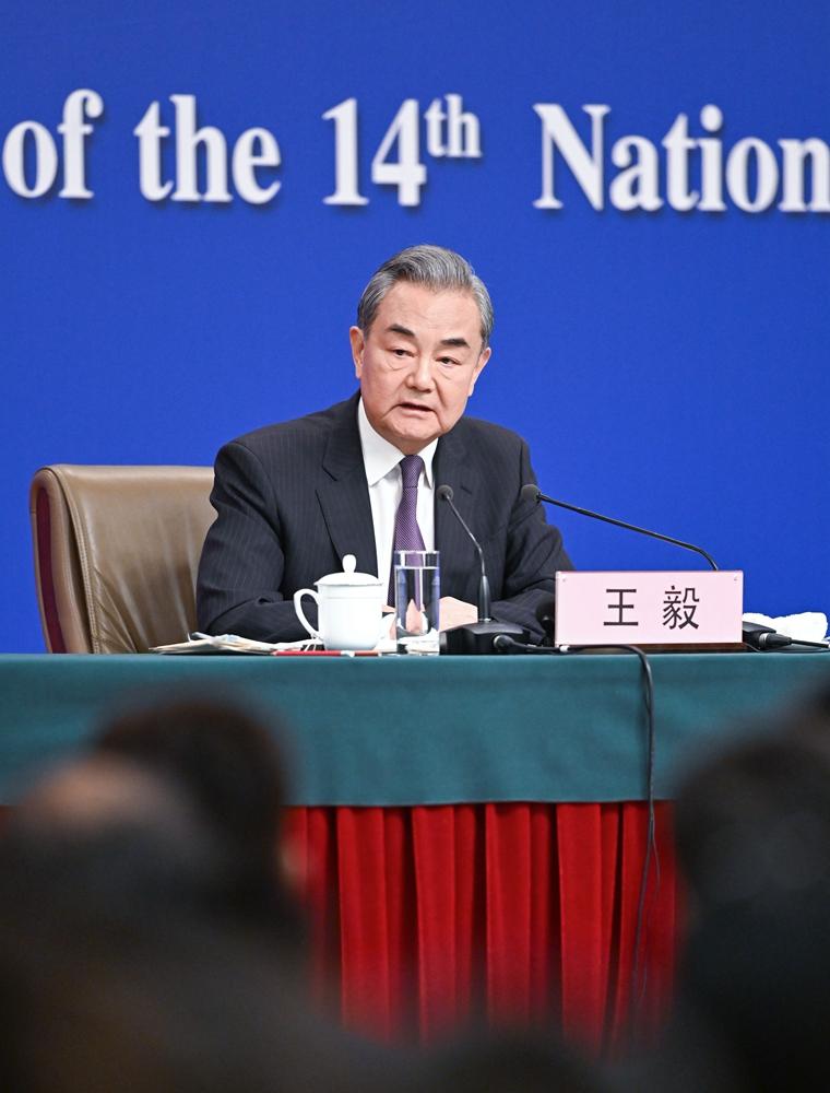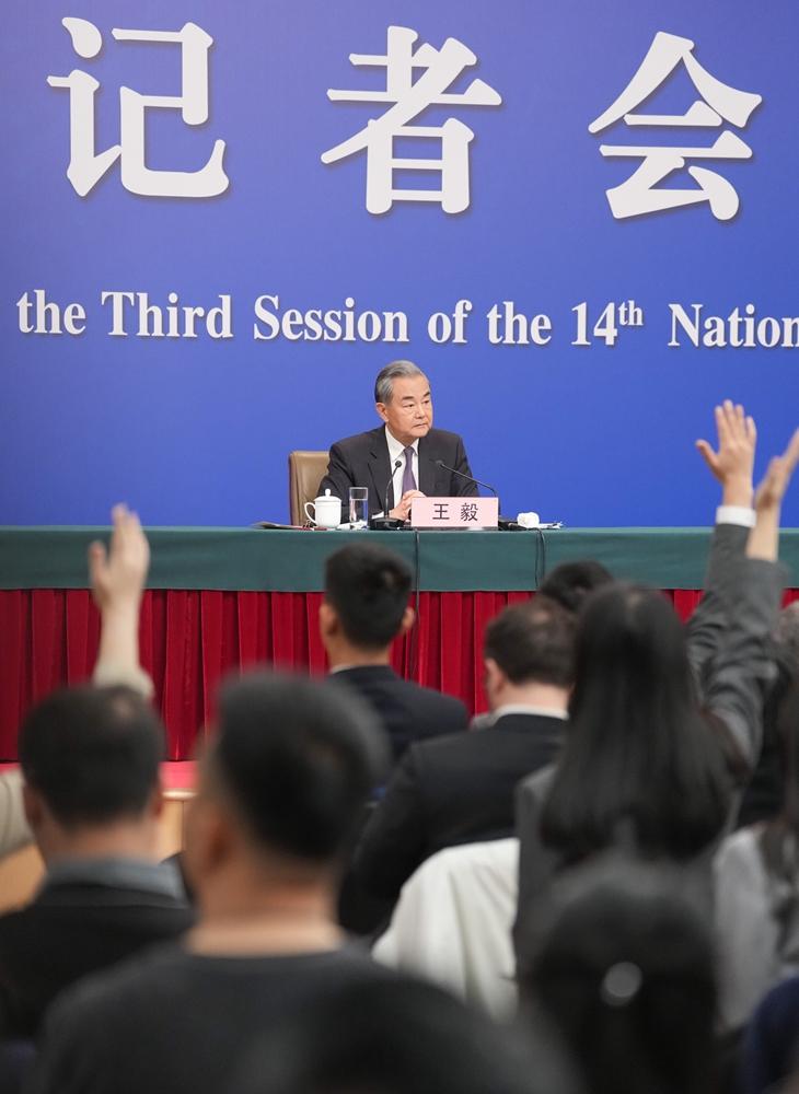 3月7日,十四屆全國人大三次會議在北京梅地亞中心新聞發(fā)布廳舉行記者會。中共中央政治局委員、外交部長王毅就中國外交政策和對外關(guān)系回答中外記者提問。 新華社記者 陳曄華 攝