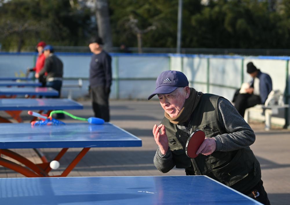 1月12日,市民在天津王串場體育公園打乒乓球。新華社記者 孫凡越 攝