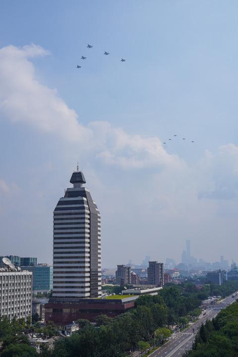 9月3日,紀(jì)念中國人民抗日戰(zhàn)爭暨世界反法西斯戰(zhàn)爭勝利80周年大會在北京隆重舉行。這是市民在拍攝空中梯隊(duì)。新華社記者 陳浩明 攝